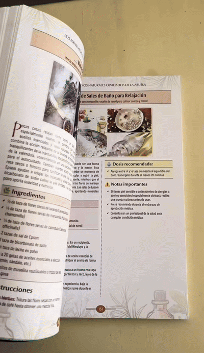 Este libro combina la tradición y practicidad que nuestras abuelas usaban para curar y cuidar a toda la familia. Reúne más de 200 fórmulas caseras, organizadas de forma clara, para que tengas soluciones seguras y efectivas para dolores de cabeza, insomnio, digestión y más. ¡Más de 24,000+ personas ya han recuperado este conocimiento!